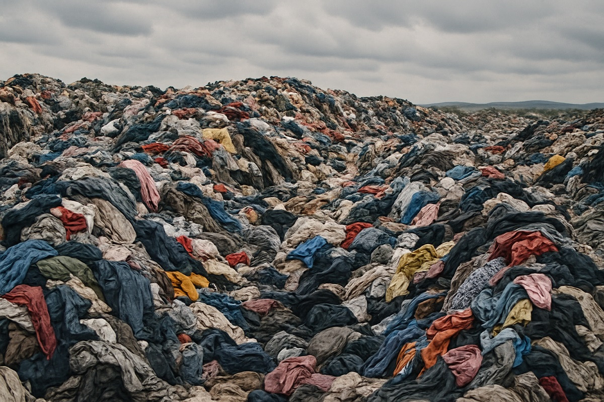 Ogni anno prodotti tessili per un peso di 83 milioni di tonnellate finiscono tra i rifiuti. Questi includono abiti e materiali tessili che non vengono più utilizzati, spesso per motivi di moda o obsolescenza programmata. Il 65% di questo materiale è composto da fibre sintetiche, come poliestere o nylon, che derivano da combustibili fossili. Tali fibre sono molto resistenti e si degradano lentamente, aggravando i problemi ambientali.